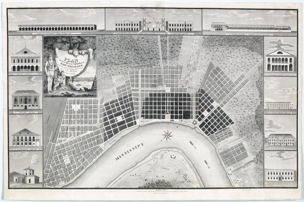 An 1815 map of old New Orleans by Tanesse.