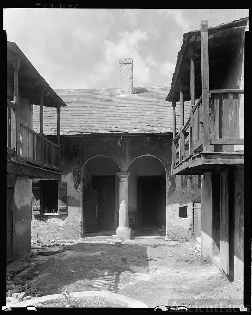 What we see jibes with old eyewitness accounts from the Louisiana Writers Project work (1930s). They interviewed old people who knew the family, taking oral history. The house is old. It was set back from the street, unlike all the others. It was a wood frame construction, one story tall. Probably had a shingle roof (the fire map says it’s not tile). Witnesses say the front yard was behind a fence, had banana trees, and a pomegranate. The outbuildings out back would have, at the time, included a kitchen, a privy, maybe a chicken coop.