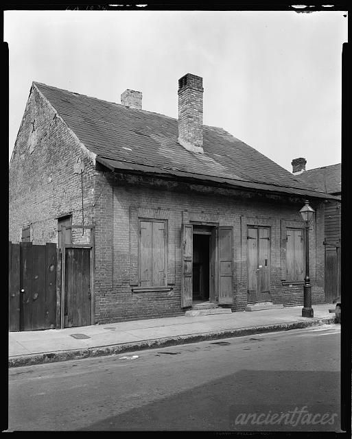The photos are of a Creole cottage elsewhere on St. Ann Street. This place is brick, and right on the street, which is more typical. The house Marie grew up in was older, wooden, set back. The outside was likely either stucco or cypress boards.
